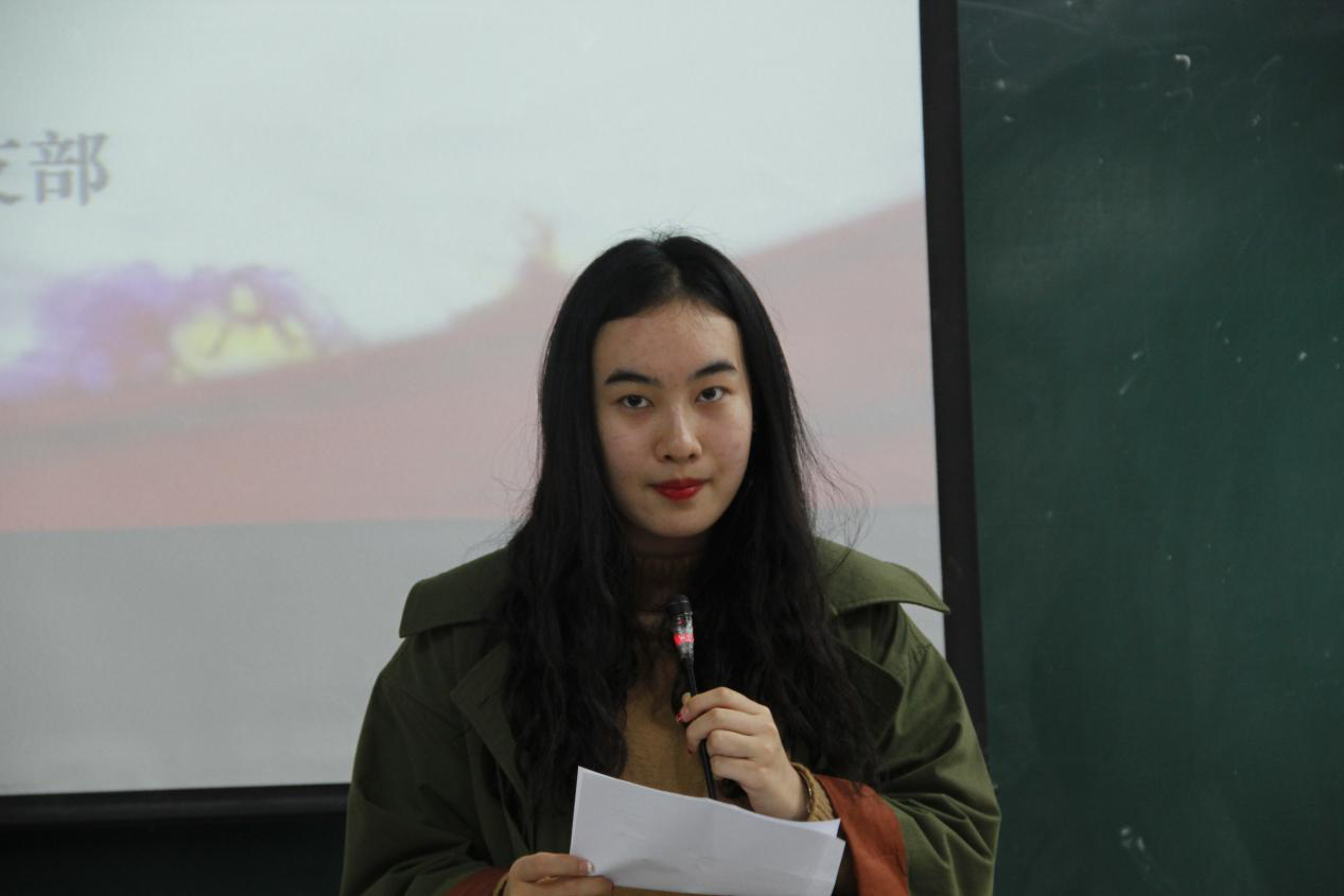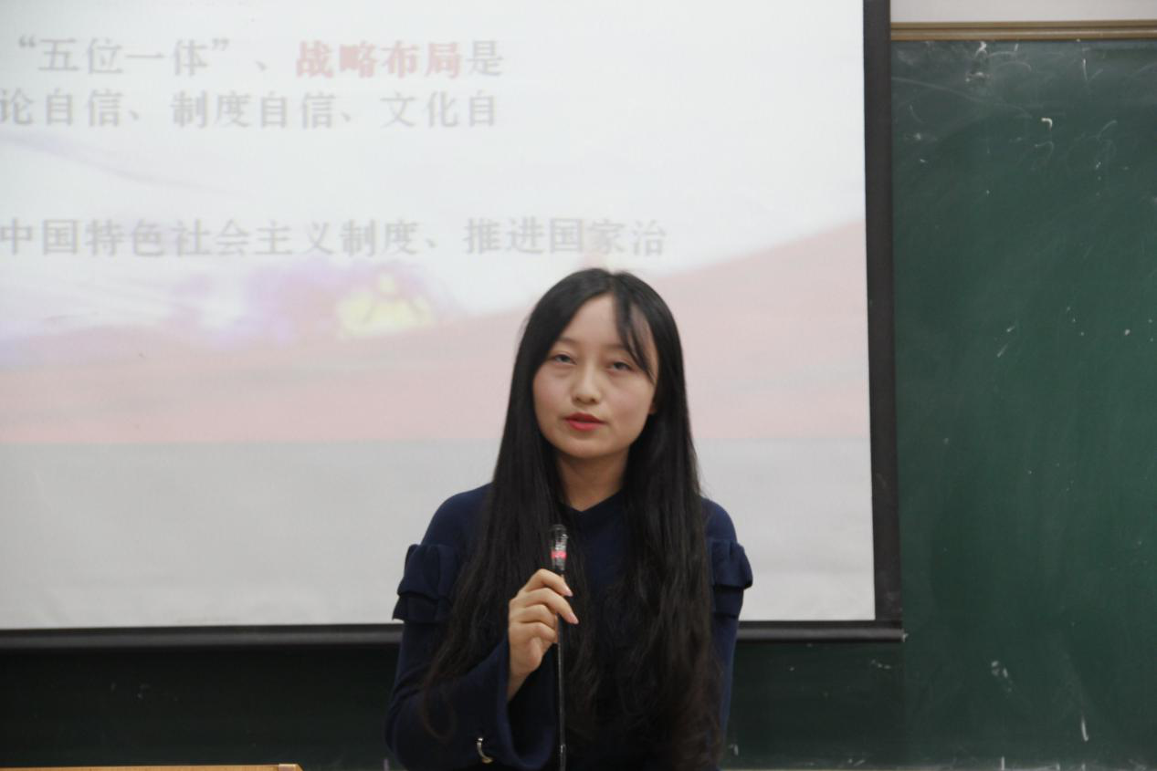 活动开始,首先由2016级法学二班支部书记张媚婷同学和2016级知识产权支部书记呼晓慧同学带领大家详细学习十九大报告的主要内容。