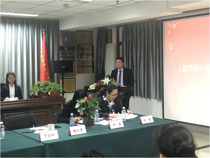 云德律所律师公司经理、法律顾问中心首席律师荆孟强讲授了律所的指导规划:第一是传统的线下授课,即以案说法等法律实务教学进课堂;第二是职业规划,让各位学子充分感受到法律实务行业的现状,有助于学子们在毕业时能做出合理的选择;第三是实务操作,要加强各位学子在实务操作方面的训练,从办案思路、材料准备等方面进行有针对性的指导;第四就是互联网的线上授课交流,通过网络解决同学们学习中遇到的问题。