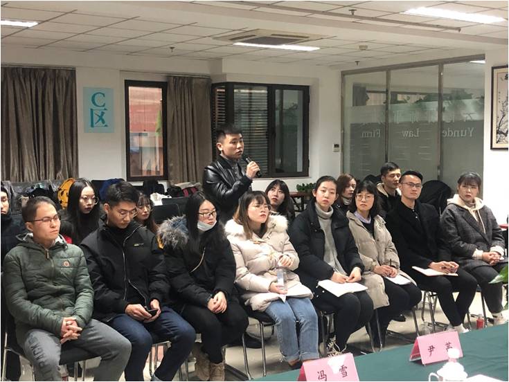 1月9日下午,公司法律硕士教育中心秘书杜佳音老师带领2018级和2019级研究生一行18人赴云德律师事务所举行法律硕士研究生与校外实务导师交流会。云德律师事务所创始人、党总支书记、主任丁云波,云德律所律师公司经理、法律顾问中心首席律师荆孟强,云德律师事务所执行主任、涉外法律事务部首席律师胡小青,云德律师事务所工会主席、金融投资法律事务部首席律师宋路凯,云德律师事务所财税法律事务部首席律师尹茜,云德律师事务所刑事辩护法律事务部律师冯雪以及见习律师共20余人参加此次交流会。