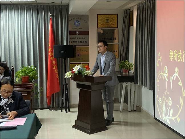 丁云波主任在致辞中表示,新时期的法律硕士教育需要开展公司和律所等实务部门,校内导师、员工和实务导师的良性互动,并就网络直播授课、员工的行为举止、对实务导师的考核等方面谈了自己的看法,并对实习导师提了相应的要求。