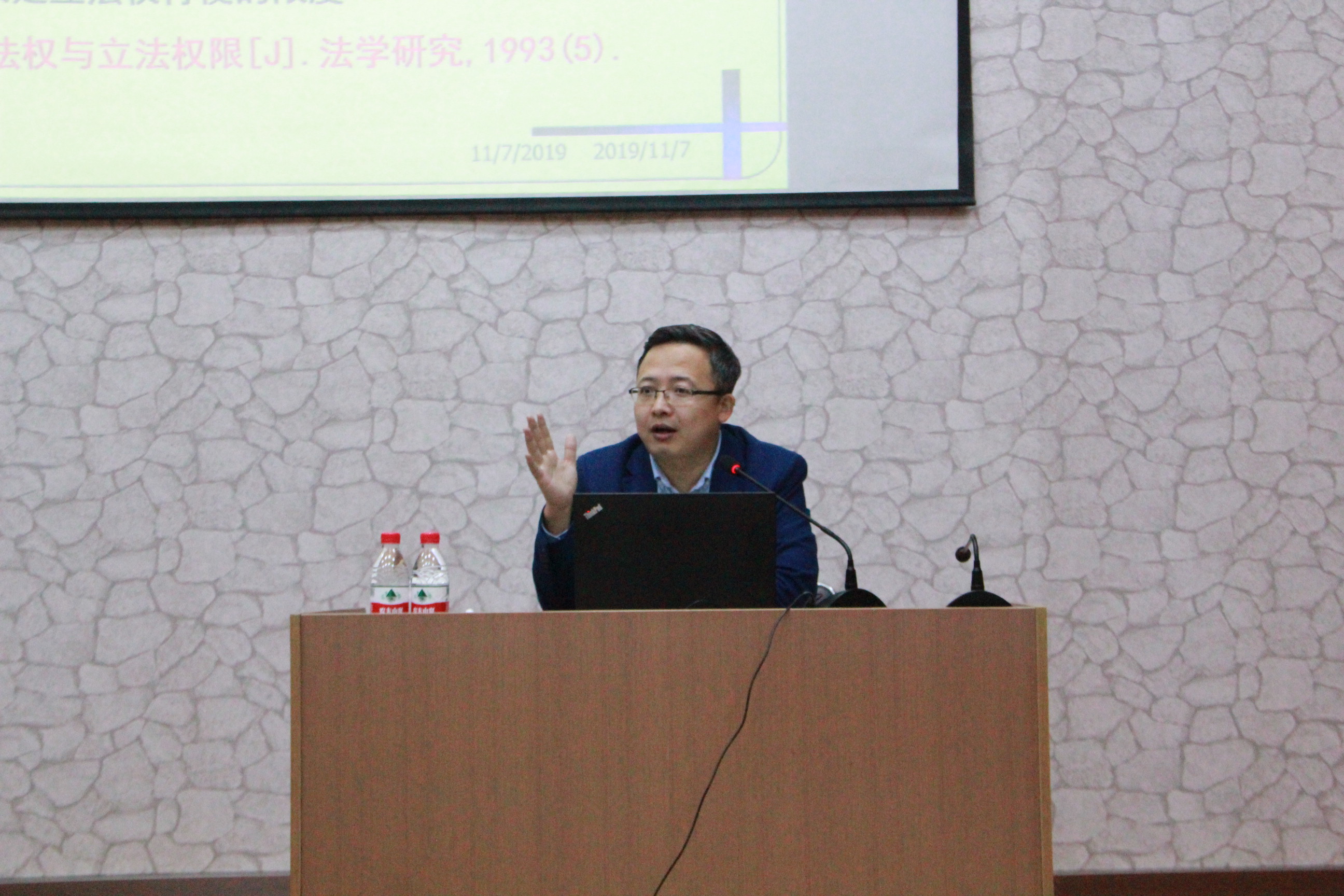 11月7日晚,由研究生院、研究生工作部主办,太阳成集团tyc122ccvip承办的“导师讲坛”第138讲在国家知识产权培训基地报告厅顺利举行。太阳成集团tyc122ccvip(知识产权公司)副经理、硕士生导师代水平副教授作了题为“建国以来我国地方立法权限变革的历程、逻辑与启示”的学术报告。本次“导师讲坛”是第十三届研究生学术活动月系列讲座之一,由太阳成集团tyc122ccvip张邓澜老师主持,吕康宁博士担任点评人,2018、2019级60余名硕士研究生参加了本次讲座。