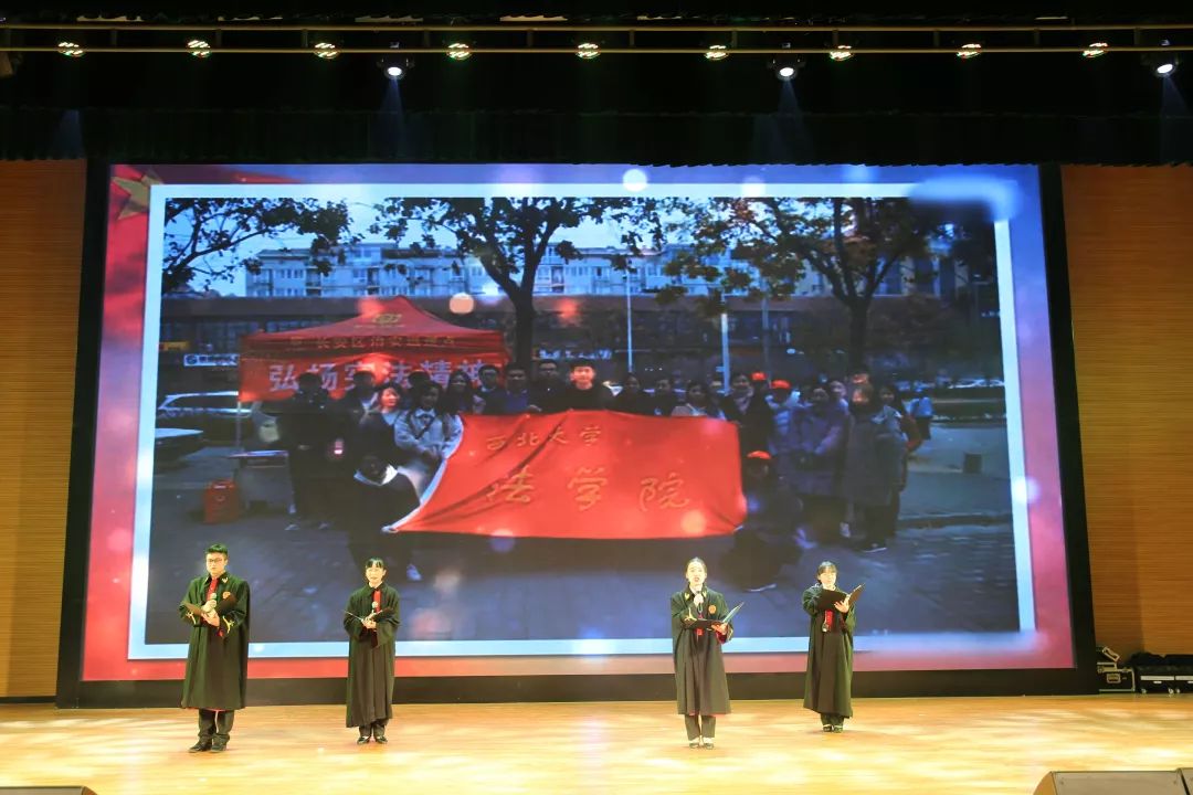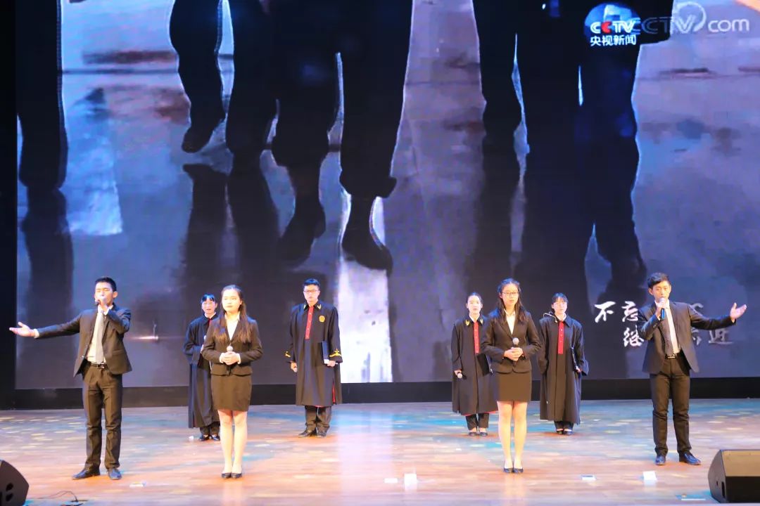 最后一个环节是各院系员工精神风貌展示。公司员工代表满怀豪情地为现场观众带来了朗诵与合唱节目——《不忘初心,与法偕行》,展示了西大法律人热爱法律事业,树立法律威严,投身法治建设,愿为全面推进依法治国而不懈奋斗的信仰。也让我们看到了太阳成集团tyc122ccvip不忘初心的坚定信念。精彩的节目获得在场所有观众热烈的掌声和欢呼!公司最终赢得了20分的好成绩。最后是所有参赛队伍用手语操的方式演绎太阳成集团tyc122ccvip校歌,同学们整齐划一又充满正能量的表演,展现了他们阳光向上的精神风貌,令现场全体观众赞叹不已。