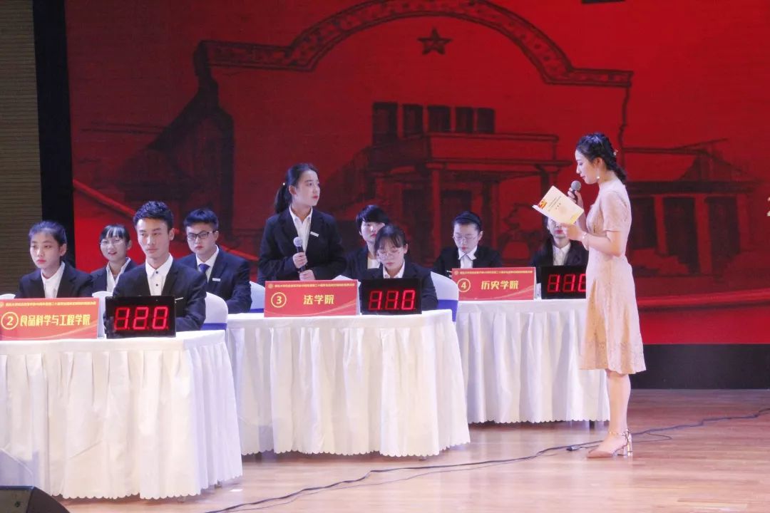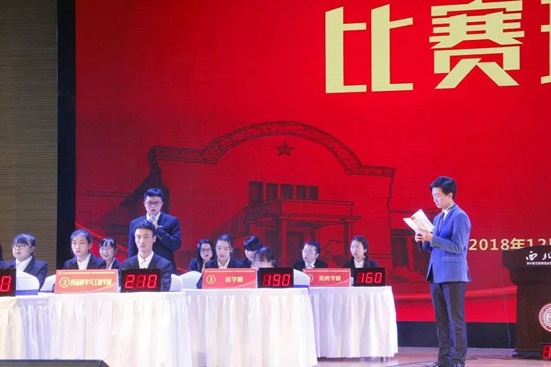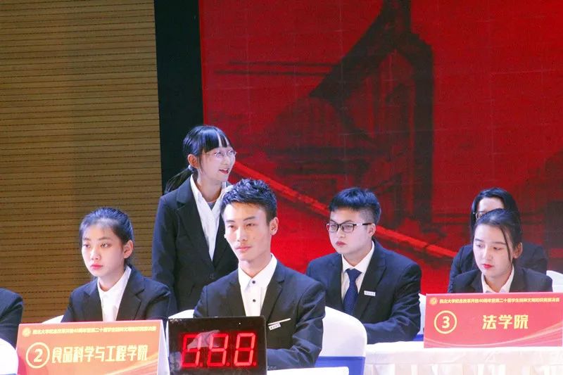 首先是必答题环节,各院基础分为100分,每支队伍四名选手轮流作答,答对一题加10分。在此环节中,公司杨家瑞同学虽然开局有些紧张,在错失一道题的情况下,其余三位同学奋起直追,为公司奠定了前期的优势基础。本环节公司共得分130分,与历史公司并列位于全场第二。