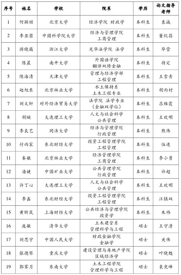 附:2018年度获“大岳高校毕业论文PPP引导计划”资助者名单