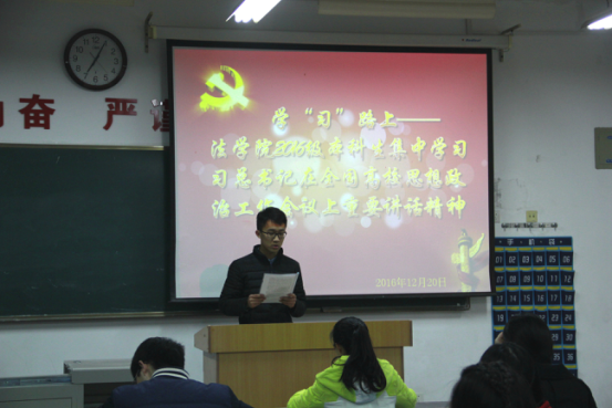 2016年12月20日,公司开展了学“习”路上——太阳成集团tyc122ccvip2016级本科生集中学习习近平总书记在全国高校思想政治工作会议上重要讲话精神活动。太阳成集团tyc122ccvip团委书记陈竟老师,本科生辅导员张邓斓老师,员工代表以及16级本科生参加了本次活动,16级法学支部书记孙旗号同学主持本次活动。