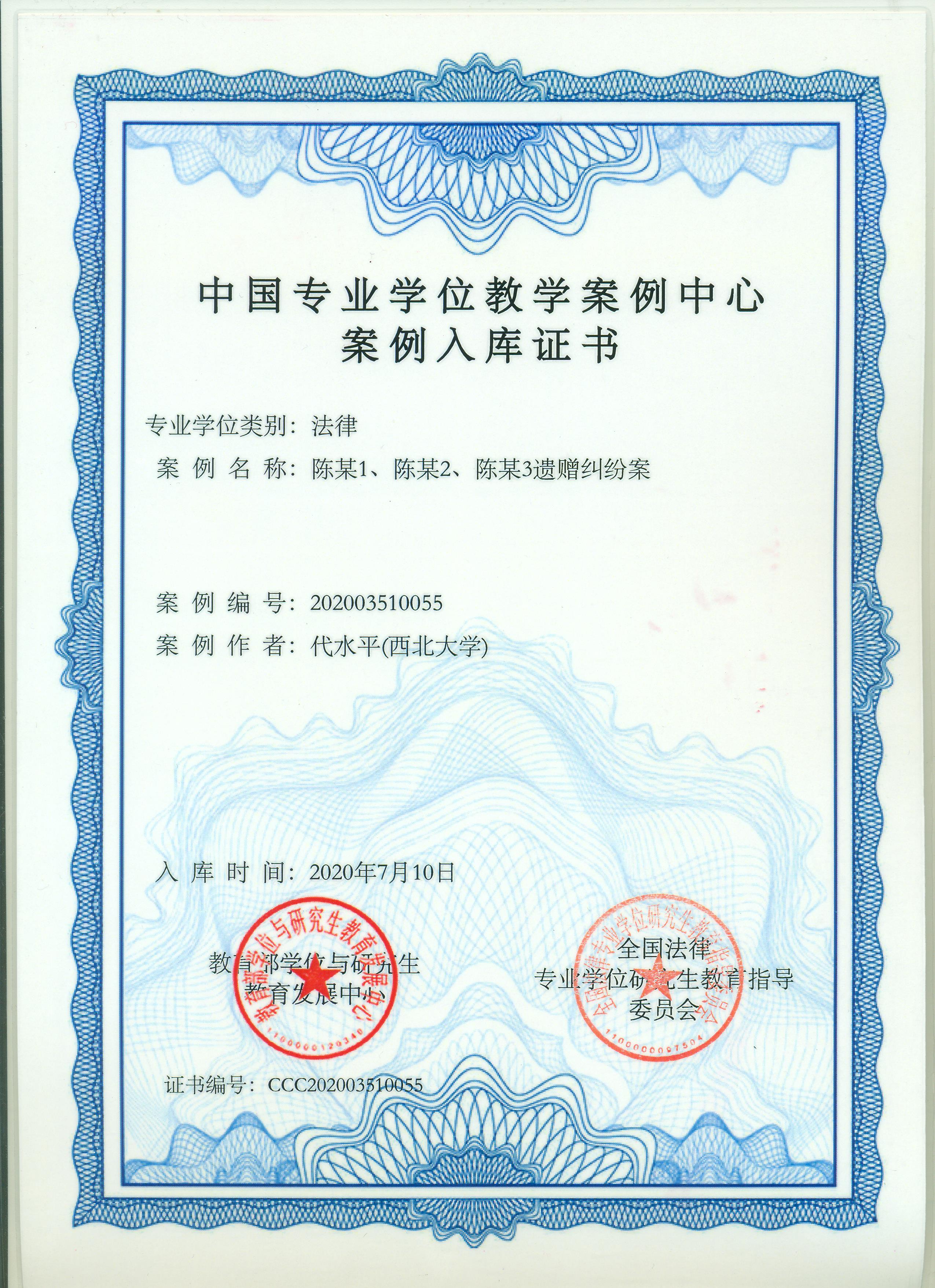 近日,教育部学位与研究生教育发展中心和全国法律专业学位研究生教育指导委员会公布了“中国法律专业学位教学案例中心”教学案例入库评审结果,公司代水平副教授提交的3篇教学案例中有2篇成功入选。