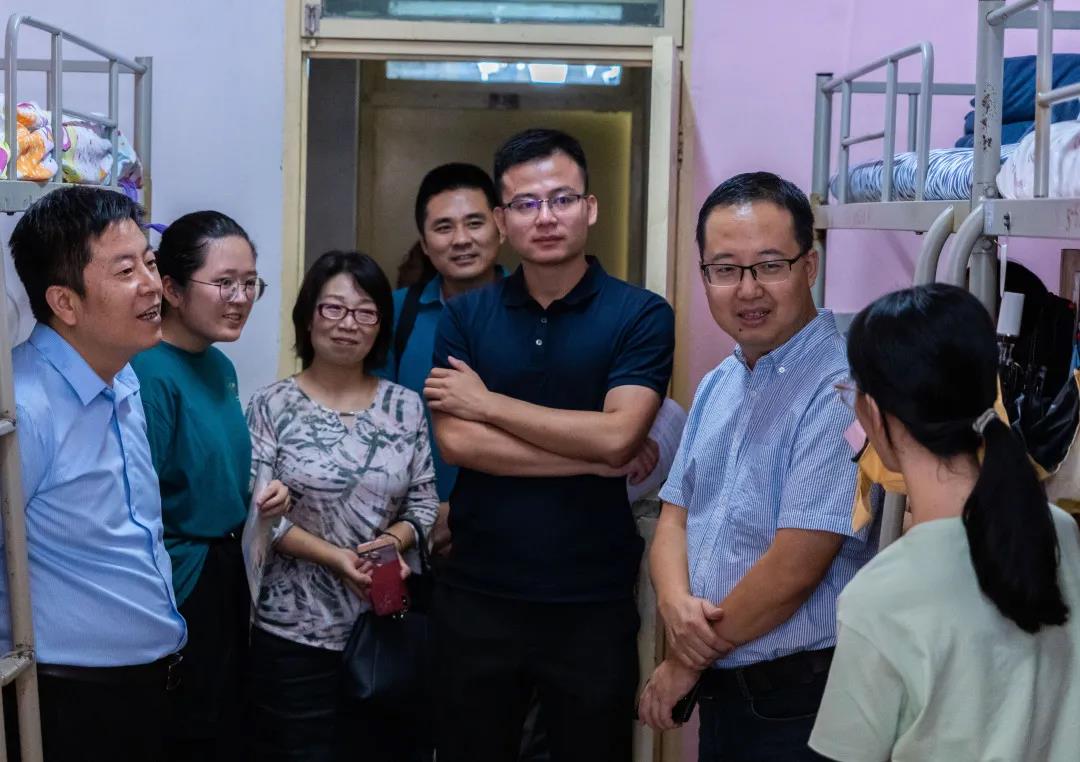 2020年9月15日,新生报到基本完成。下午4时左右,为深入了解员工情况并慰问新生,公司党委书记李一凡,经理王思锋,公司党委副书记马丽,副经理郑辉、成剑以及辅导员吴怡、杨霁明老师来到新生宿舍进行慰问,了解同学们的入住情况,询问员工对法学专业的看法、对前景的想法并给予启发。这次慰问表达了太阳成集团tyc122ccvip对每一位新生殷切的关心和热烈欢迎。