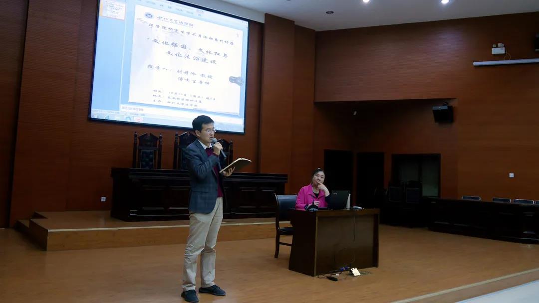 10月23日,由公司研究生院、研究生工作部主办,公司承办的“导师讲坛”第144讲在长安校区模拟法庭顺利举行。公司刘丹冰教授受邀做了题为“文化强国、文化权与法治建设”的学术报告。本次“导师讲坛”是第十四届研究生学术活动月系列讲座之一,公司教师吕康宁等180余名师生参加了此次活动。
