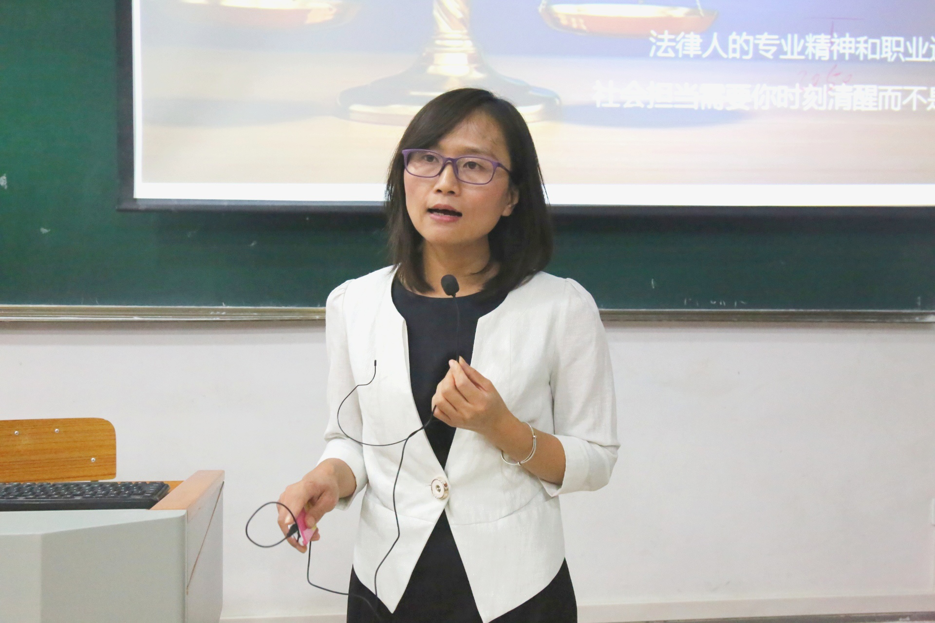 崔玲玲老师从专业的角度开启了“法律人的专业精神与社会担当”课堂。课堂一开始,崔玲玲老师以生动的案例指出同学们作为法律人职业的特殊性与法律人应具有社会责任感。在与同学们的积极交流中,崔玲玲老师强调了法律人应具有诚实敬业的品质,在面对案例时肩负起专业的职责与担当。不仅于此,拥有完善的法律知识体系与严谨的思维能力更是同学们打开法律之门必不可少的钥匙。