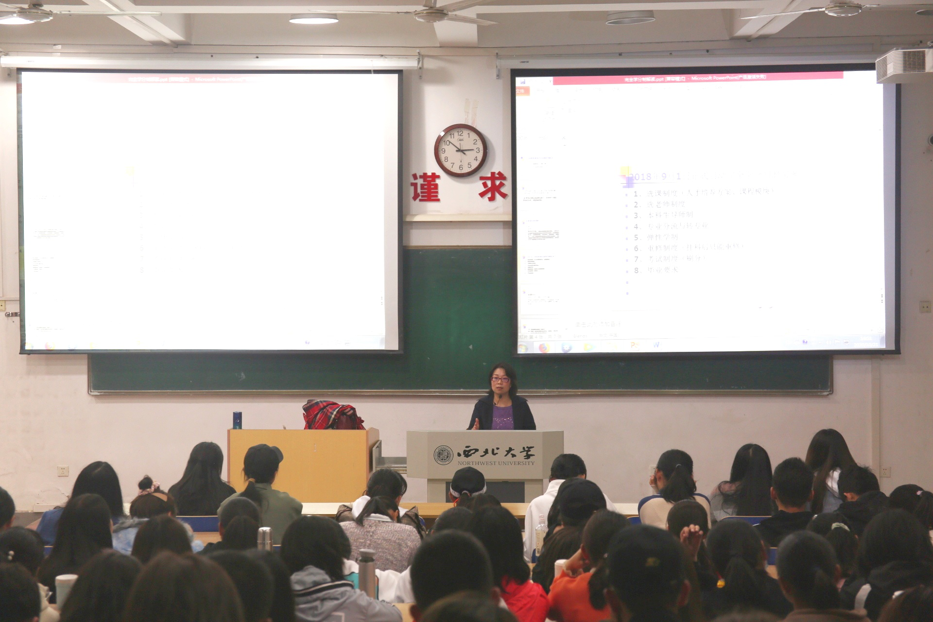 听完郑老师给同学们的讲解后,王凯霞老师为同学们详细具体地介绍了员工培养方案以及大学教学计划,丰富的课程内容让同学们感受到法学分类之精细。紧接着,王老师给同学们讲解了关于辅修的制度,辅修可以增加多方面的知识储备,提高同学们的专业水平。最后,王老师就“老员工创新创业”项目给同学们进行了介绍,让同学们对未来的学习有了更大的期待。
