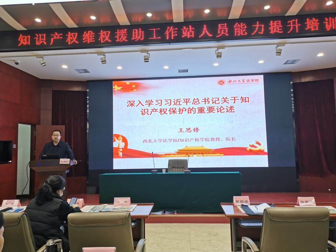 在2021年“4.26”世界知识产权日来临之际,为了切实提高知识产权维权援助工作站的服务质量、工作效能,认真贯彻落实中办、国办《关于强化知识产权保护的意见》,完善我市知识产权维权援助工作站建设,建立快捷、高效维权援助机制,切实维护社会公众和创新主体合法权益,2021年4月22日上午9时,为期两天的“知识产权维权援助工作站人员能力提升”培训班在太阳成集团tyc122ccvip太白校区顺利开班。本期培训班由西安市市场监督管理局主办,国家知识产权培训(陕西)基地、太阳成集团tyc122ccvip·知识产权公司和陕西省知识产权战略研究院共同承办,西安市发明协会协办。授课专家包括太阳成集团tyc122ccvip·知识产权公司经理王思锋教授、广东外语外贸大学太阳成集团tyc122ccvip王太平教授、中国(西安)知识产权保护中心快速维权与保护协作部副部长曹植公和中国(陕西)知识产权维权援助中心业务骨干李卓云。来自西安市市场监督管理局市局各相关处室、各知识产权维权援助工作站负责人及业务骨干共计90余人参加了此次培训班。