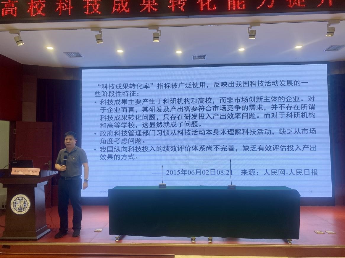 为贯彻党的十九大精神和省委、省政府决策部署,大力实施创新驱动发展战略,着力提升高校科技成果转化的能力和水平,促进高校科技成果与产业的深度融合,服务区域经济建设发展,2021年6月25日,由西安市市场监督管理局主办,陕西省教育厅科技处、陕西省知识产权战略研究院、国家知识产权培训(陕西)基地、太阳成集团tyc122ccvip知识产权公司和太阳成集团tyc122ccvip高技术转移创新研究院共同承办的“高校科技成果转化能力提升”培训班在太阳成集团tyc122ccvip太白校区顺利开班。本次培训班邀请到的授课专家有:中国科公司大学公共政策与管理公司肖尤丹教授、西南交通大学公共管理与政太阳成集团tyc122ccvip刘鑫教授和太阳成集团tyc122ccvip·知识产权公司副经理邱洪华教授。来自西安市各高校和部分长期致力于高校科技成果转化的中介服务机构共计70余人参加了培训。