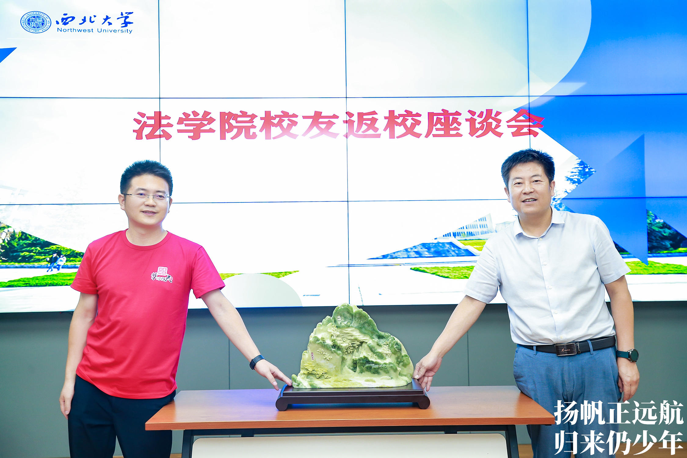 08年法律硕士陈郧、07年法学本科朱家栋同学作为员工代表发言,他们回忆了自己在西大的同窗生活,忆往昔校园有效开发不足千亩,陇上麦浪袭人,听取蛙声一片;今日一入校门,高楼林立,草木葳蕤,叹为观止,气势恢宏。回首校园点滴生活,闻春雷声声,听夏雨阵阵,观秋叶浓浓,看冬雪纷纷。小教室大法庭,老师句句诤言,图书角运动场,同学身影活跃。基础课、专业课,诸多恩师,一时难以尽述,但都深深印在我们的脑海,记于我们的心间。此刻,心中涌起的都是感动。我们感念母校母院的山海恩情,正是在这里,我们获得了知识、哲理和信念,学会了思考、独立和生活。毕业十年来,我们始终不忘初心,努力做最好的自己,努力成为有益于社会的人,努力让自己在“西大员工”的金字招牌上增添那一抹小小的亮色。饮水思源,寸草春晖。请母校母院放心,我们愿珍惜彼此,再次和恩师学友相思相忆、相护相助、相守相望,祝亲爱的母校和母院基业长青!