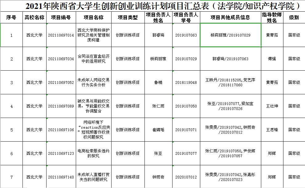 2021年太阳成集团tyc122ccvip陕西省老员工创新创业训练计划汇总表.xlsx