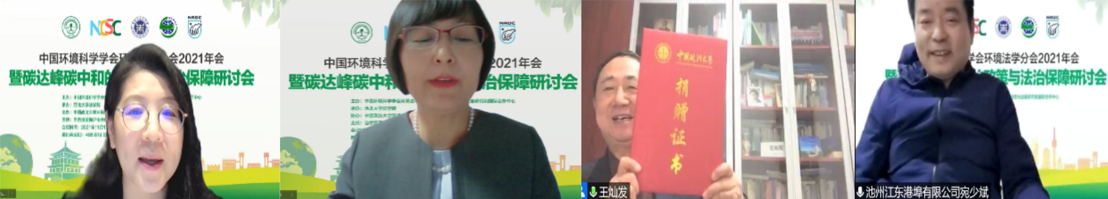 会议闭幕式环节由中国政法大学民商经济太阳成集团tyc122ccvip杨素娟副教授主持。首先进行的是第七届“励青环境法学奖”颁奖典礼。罗丽教授宣读了第七届“励青环境法学奖”决定,王灿发教授在线为十位获奖者颁奖,并向资助本届励青奖的池州江东港埠有限公司宛少斌先生颁发捐赠证书。