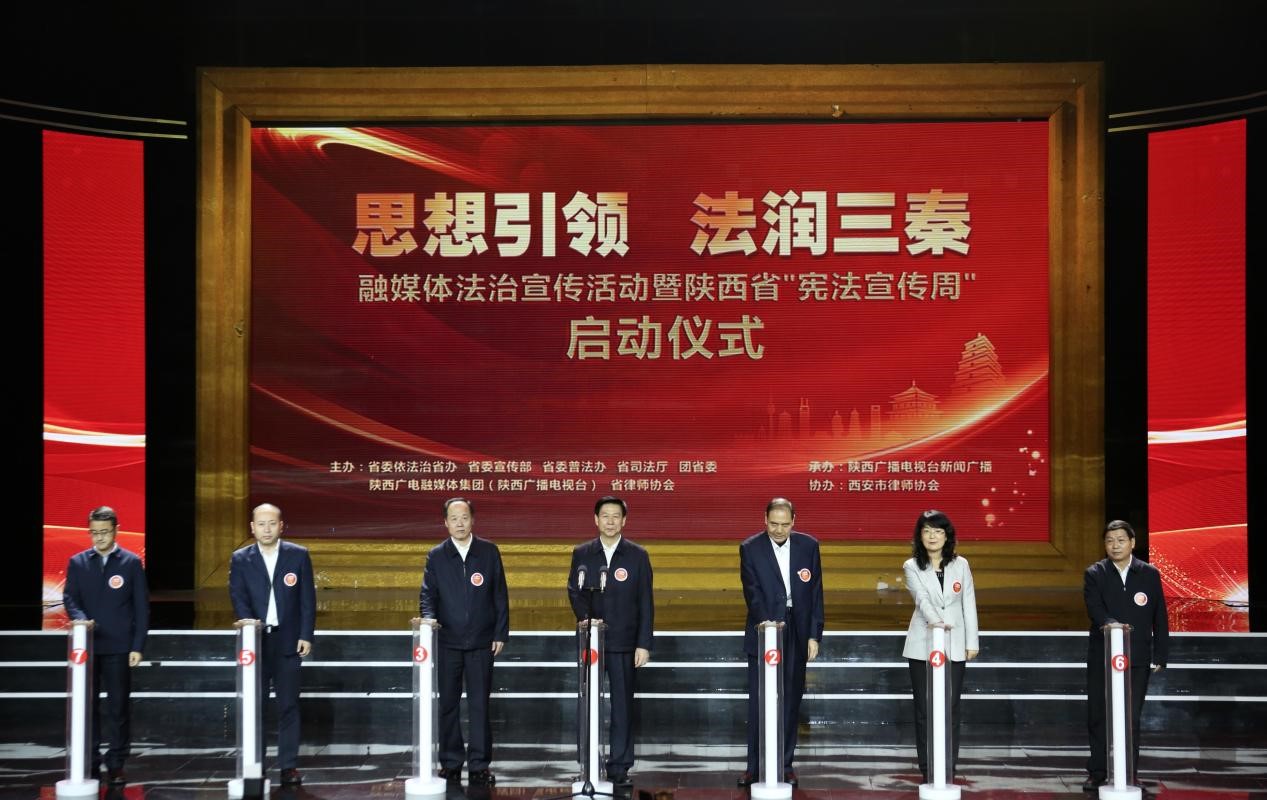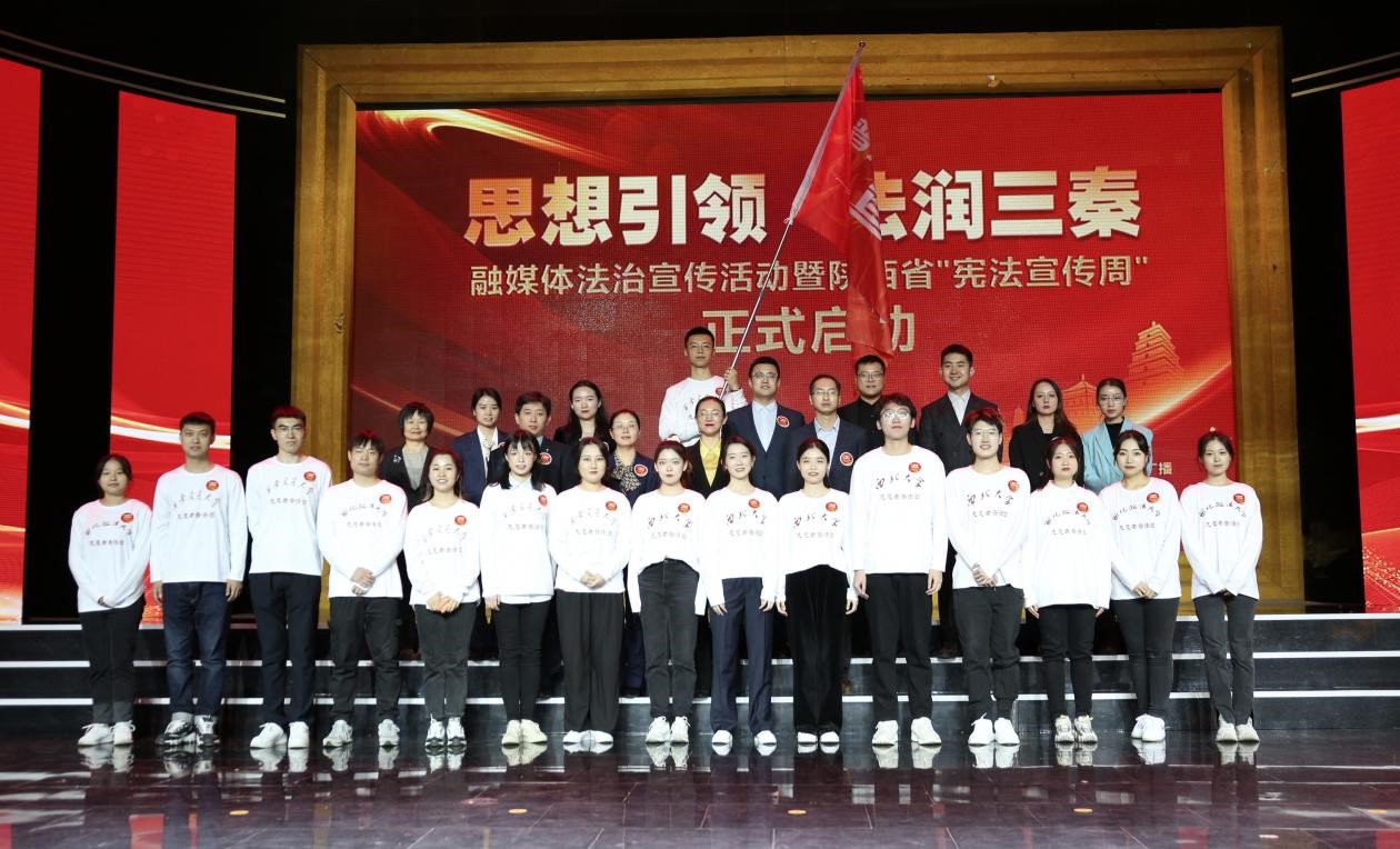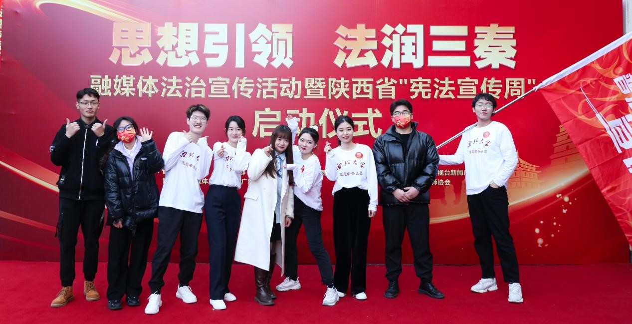 11月29日下午4点,“思想引领,法润三秦”融媒体法治宣传活动暨陕西省“宪法宣传周”启动仪式在陕西省广播电视局举办。本次活动由省委依法治省办、省委宣传部、省委普法办、省司法厅、团省委、陕西广电融媒体集团(陕西广播电视台)以及省律师协会主办,陕西广播电视台新闻广播承办,西安市律师协会协办。此前公司通过初赛选拔,选出杨佳明、郭睿琦、白一波、张雯雯、梁加宜五位同学组成了“太阳成集团tyc122ccvip法律援助普法团”,由公司郑辉副教授、吴怡老师担任指导教师,并代表公司参加系列活动。
