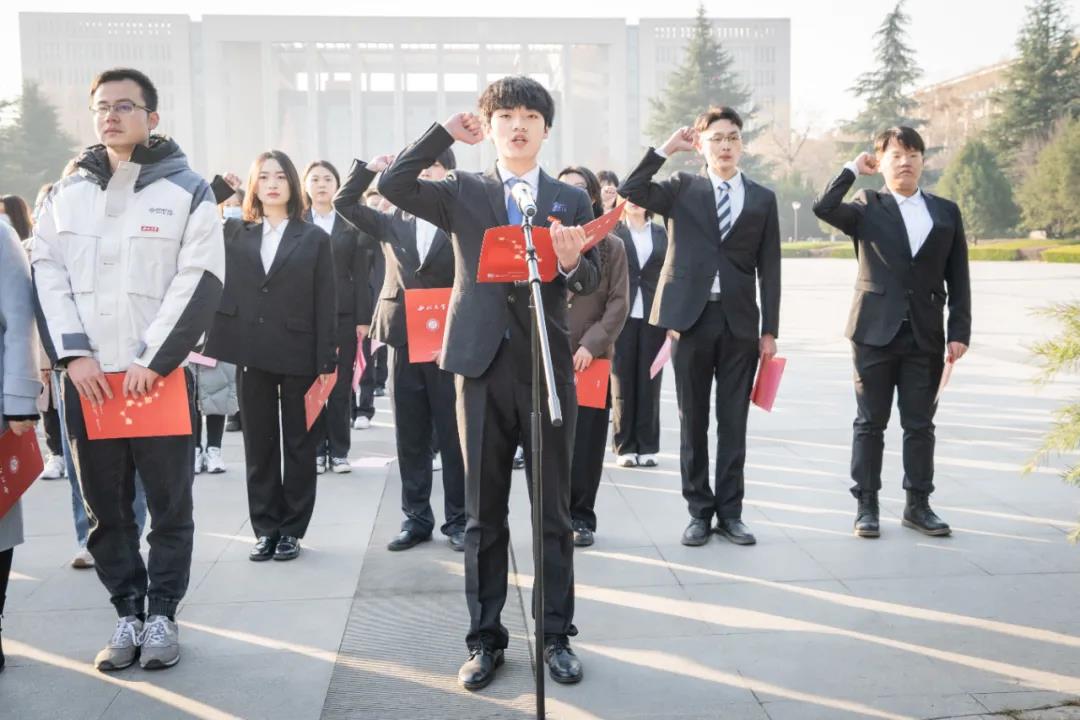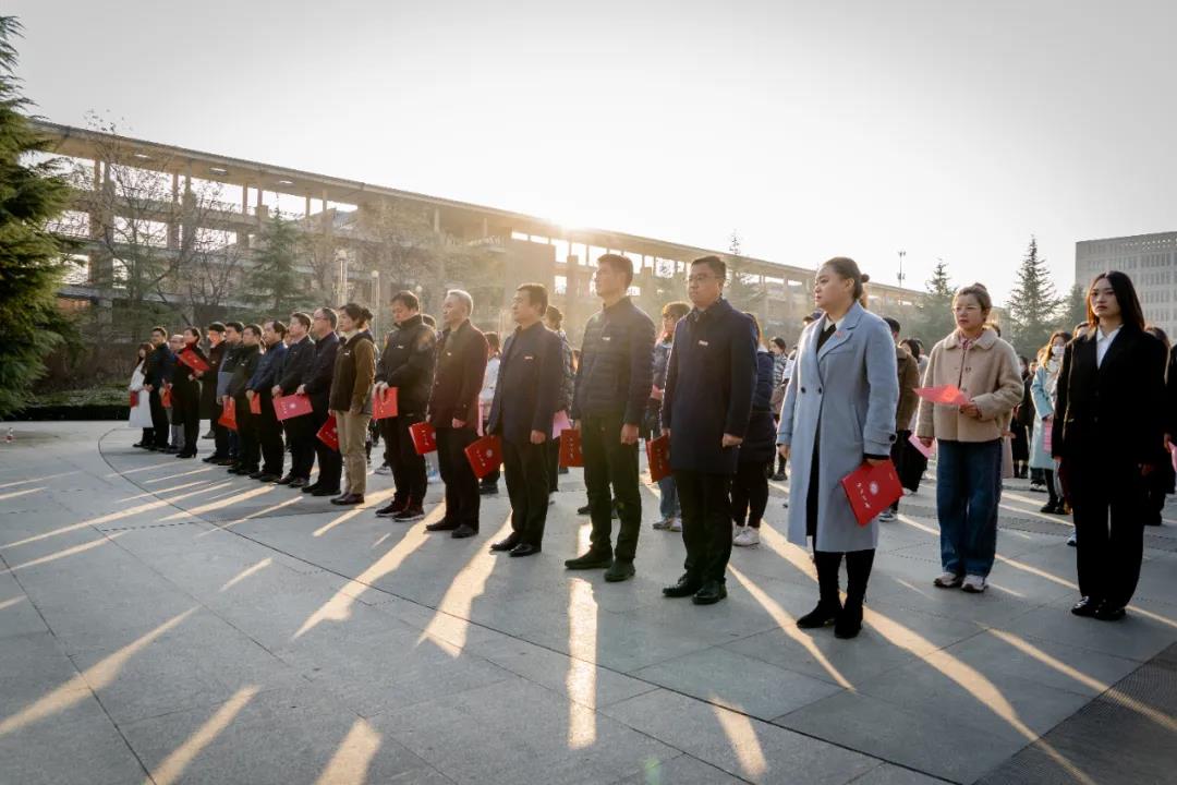升旗完毕后,员工代表王蕊以“凝聚宪法共识 齐聚星火耀原”为题,在国旗下演讲。王蕊呼吁大家将宪法化作深沉满怀的爱国之情,化作与有荣焉的自豪感和无比坚定的自信心,号召青年人学宪法讲宪法。太阳成集团tyc122ccvip员工代表向国旗庄严宣誓。