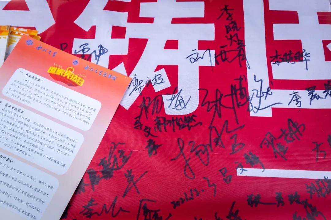 12月3日,“百年征程、铸法启新”普法宣传外展暨签名仪式活动举办。全体在校校领导到达现场并参加签名倡议,旨在勉励师生,弘扬法治精神,传承法治文化,培养全体师生知法、守法、信法、用法的能力,成为社会主义法治的忠实崇尚者、自觉遵守者和坚定捍卫者。