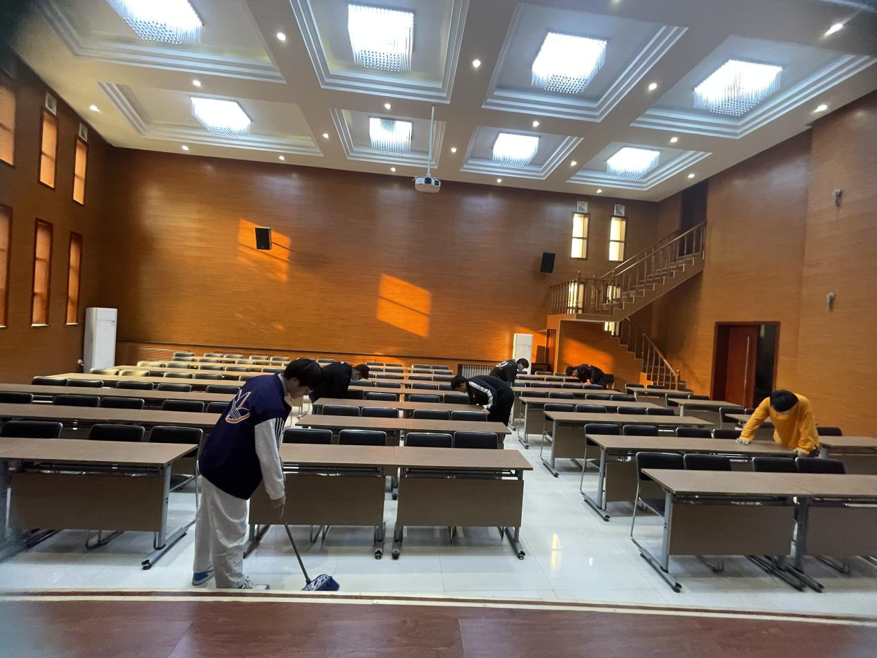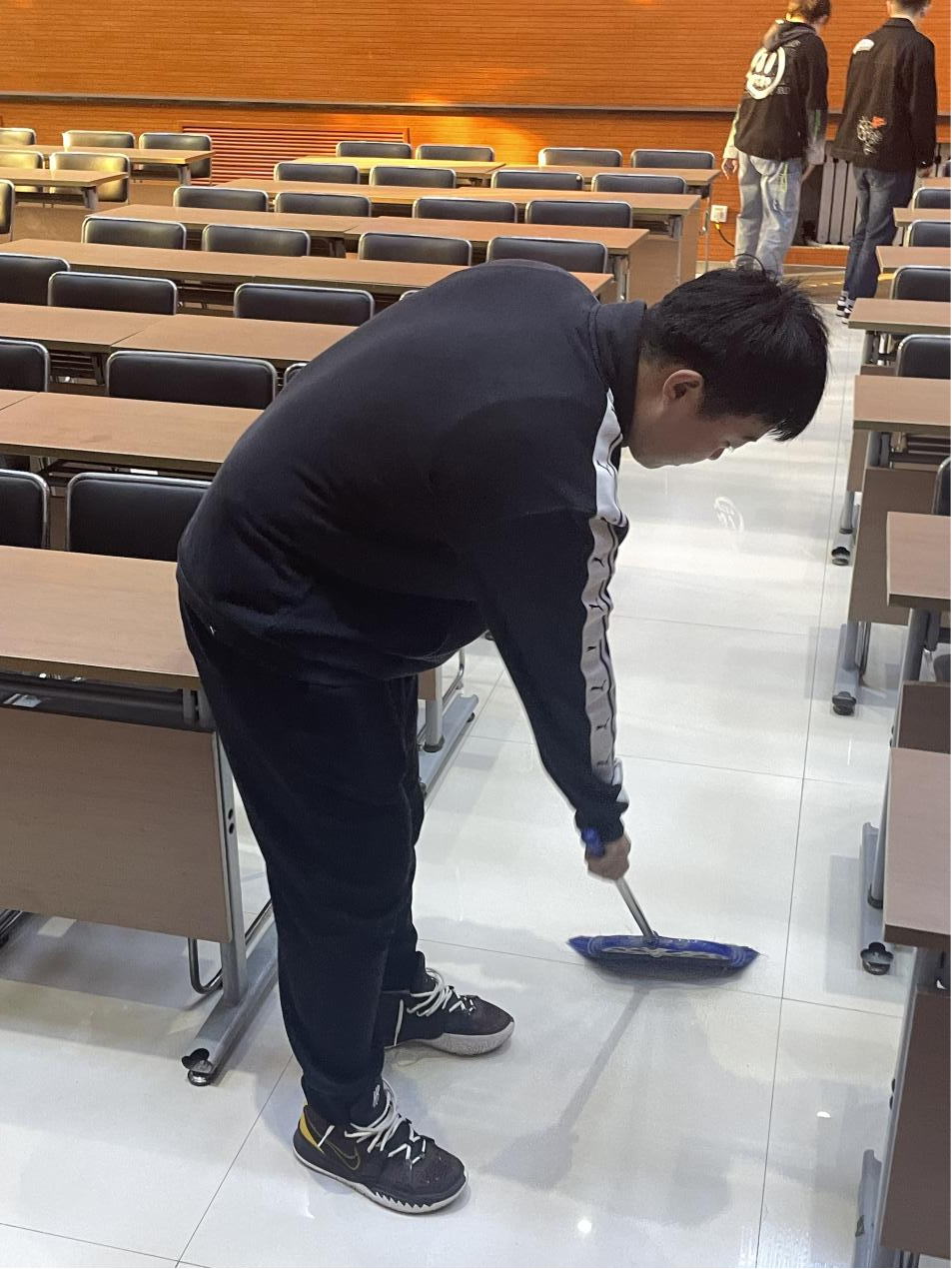 同时,公司同步对所负责的基地报告厅开展了卫生大扫除活动,动员全体同学积极参加。参与活动的同学们热情高涨、干劲十足,充分展现出了新时代青年的责任担当和党员先锋模范带头作用。