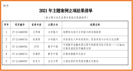 2021年主题案例征集工作由学位中心组织开展,聚焦时代热点,挖掘具有时代性、引领性、价值性的高质量专业学位研究生教学案例资源,共设“乡村振兴”“生态文明”“数字中国”“共同富裕”四个主题。公司5项申报案例获立项,并列全国高校第二。