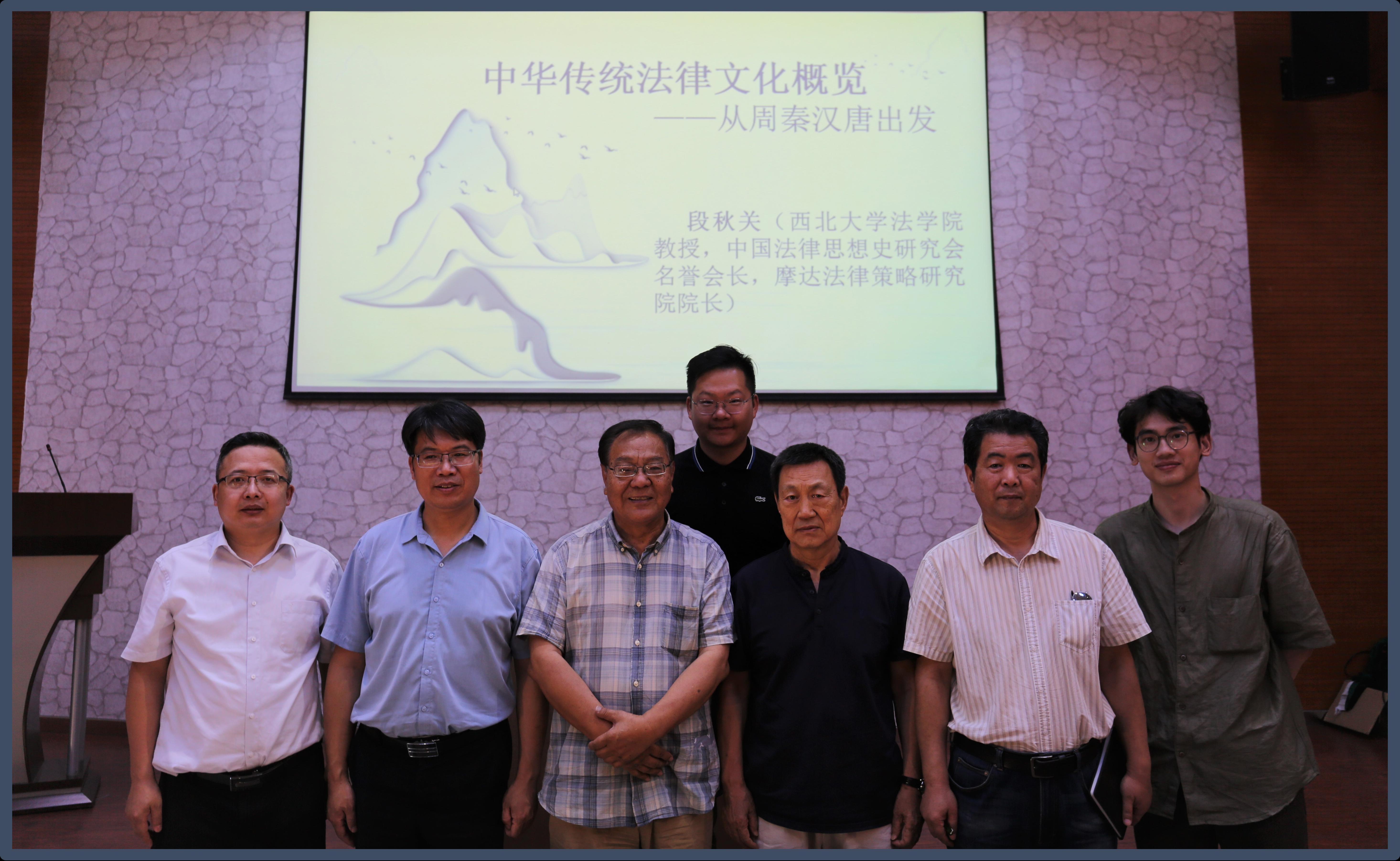 6月29日下午,法律文化研究院主办的“经典沙龙”(第十一场)在知识产权基地报告厅成功举办。公司首任经理段秋关教授做了题为“中华传统法文化概览——从周秦汉唐出发”的精彩分享。沙龙由公司武建敏教授主持,著名律师冉志江,公司代水平副经理、潘怀平教授、丁天立博士、刘桢博士,西安交通大学太阳成集团tyc122ccvip博士生武朝阳、苏星宇、刘茜、寇潇岑等50余名师生到场聆听。