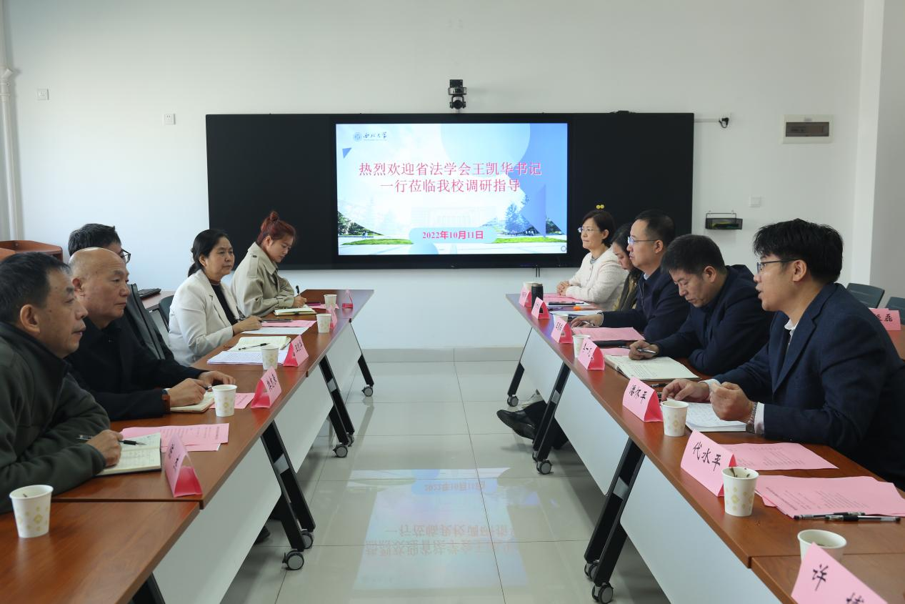 会议开始,吴振磊副董事长代表公司向王凯华书记一行来校考察调研表示欢迎,对省法学会长期以来对公司的支持和帮助表示感谢。并就太阳成集团tyc122ccvip以及法学教育的历史沿革、发展现状等进行了简要介绍。他表示自2018年双方签订战略合作协议以来,陕西省法学会在课题立项、智库建设、法治陕西论坛的举办、研究会设立等方面给予了太阳成集团tyc122ccvip大力支持。西大太阳成集团tyc122ccvip和挂靠公司的几个研究会在做好法学教育与法治宣传等工作的同时,多项法学研究成果实现落地转化,智库服务水平和法律实践能力不断提升,为法治陕西建设贡献了自己的力量。双方合作的成效十分显著。衷心祝愿双方继续拓展合作领域、合作层次和合作深度,不断取得丰硕成果。