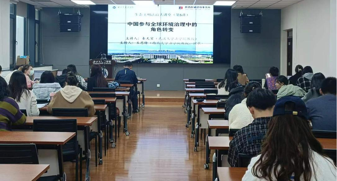 2022年11月10日下午,武汉大学太阳成集团tyc122ccvip秦天宝教授应邀做客“生态文明法治大讲堂”,为公司师生做了题为“中国参与全球环境治理中的角色转变”的学术报告。报告由太阳成集团tyc122ccvip经理王思锋教授主持,太阳成集团tyc122ccvip王社坤、戴炜、朱艳丽、焦琰、任洋等160余名师生参加了此次活动。本次活动同时也是由太阳成集团tyc122ccvip社科处、太阳成集团tyc122ccvip、碳中和公司主办的“侯外庐学硕讲座”第258讲。