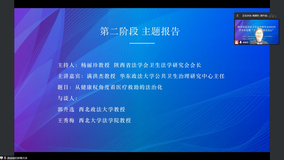 大会主题报告阶段,由陕西省法学会卫生法学研究会会长杨丽珍教授主持。