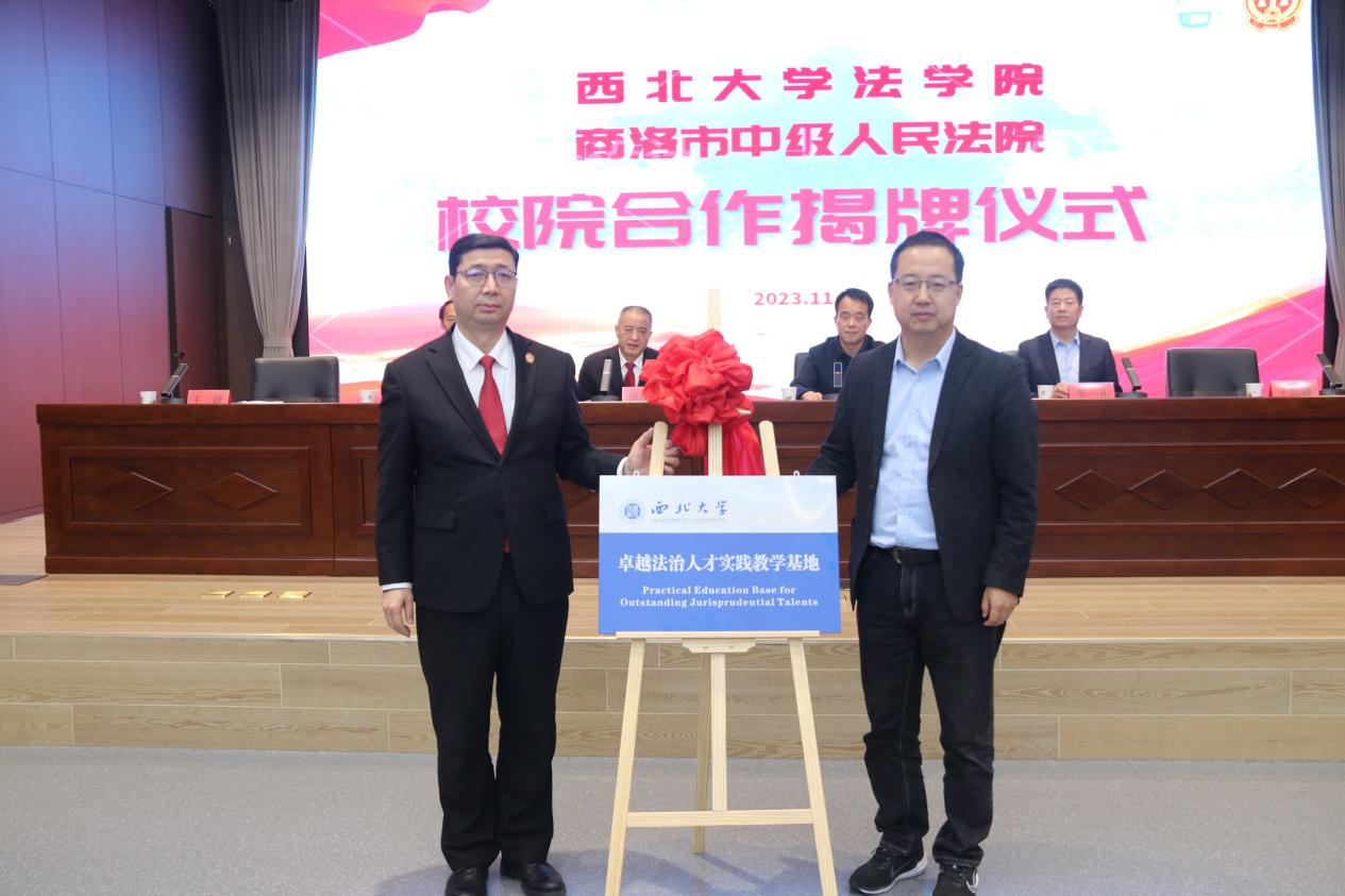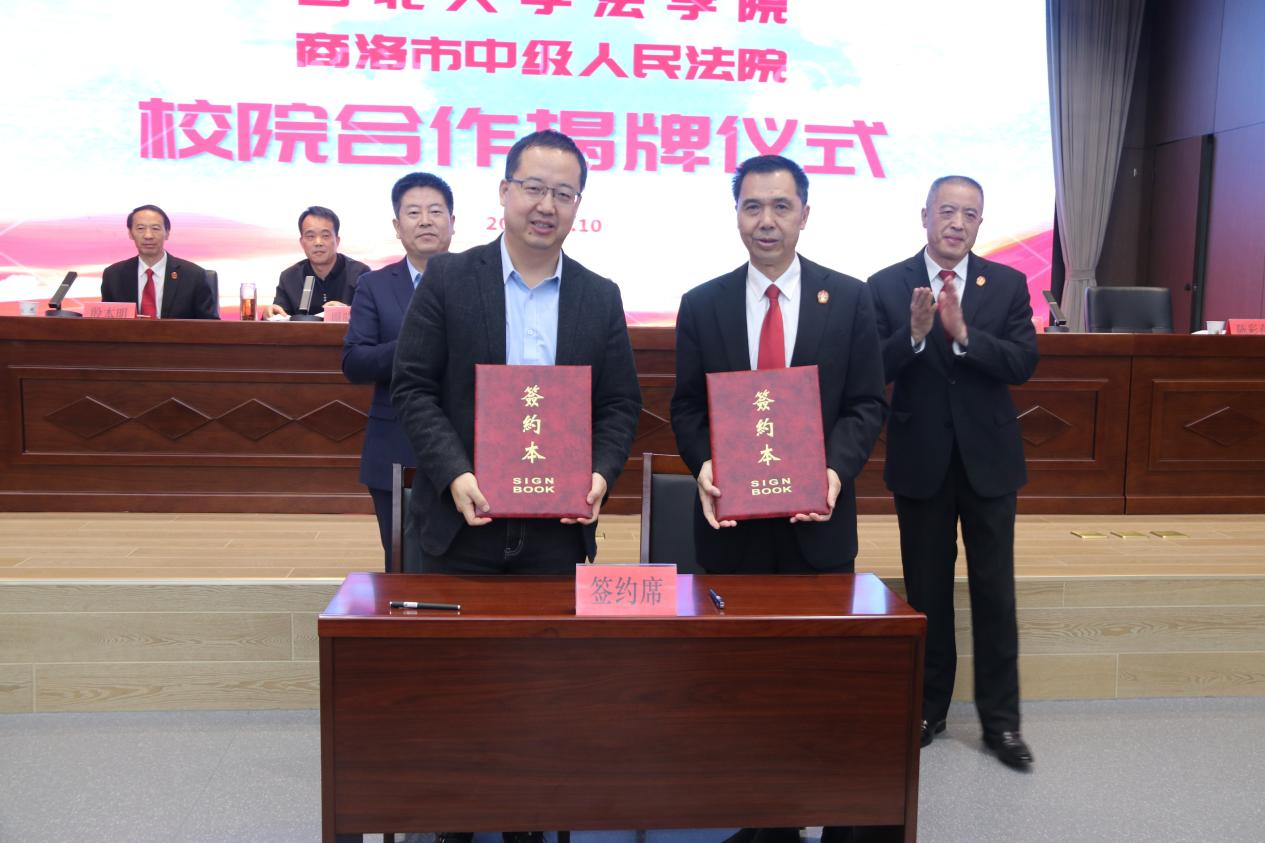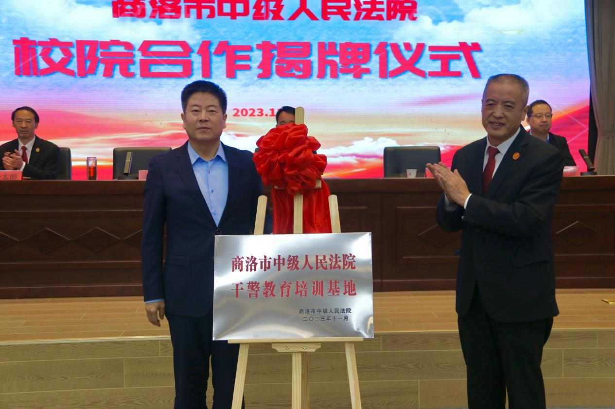 会上,太阳成集团tyc122ccvip与商洛中院签订了《全面合作协议书》,双方共同为“商洛市中级人民法院干警教育培训基地”和“太阳成集团tyc122ccvip卓越法治人才实践教学基地”揭牌。