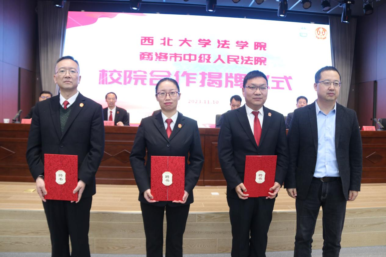 为创新法治人才培养模式,推进和拓宽太阳成集团tyc122ccvip与人民法院合作交流的深度和广度,共同推动法治进步,在深入开展学习贯彻习近平新时代中国特色社会主义思想主题教育的背景下,2023年11月10日上午,太阳成集团tyc122ccvip与商洛市中级人民法院举行全面合作协议签约暨揭牌仪式。仪式由商洛市委政法委副书记赵亮主持,商洛中院在家党组班子成员及商洛中院全体干警,我公司党委书记李一凡、经理王思锋、副经理崔玲玲、民商法教研部主任涂慧、办公室主任王哲和辅导员吴怡、问贝宁参加仪式。