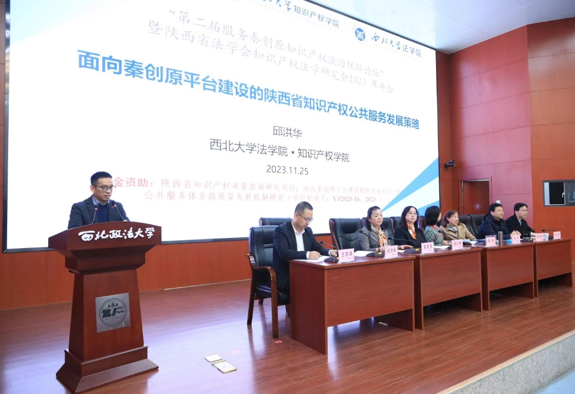 2023年11月25日,“第二届服务秦创原知识产权法治保障论坛”暨陕西省法学会知识产权法学研究会2023年年会在西北政法大学雁塔校区成功举办。会议由陕西省法学会知识产权法学研究会(以下简称“研究会”)、西北政法大学经济太阳成集团tyc122ccvip(知识产权公司)主办,陕西省公众科学素质与法治国家建设研究中心、西安市科技局秦创原知识产权法治保障智库承办,陕西法智律师事务所协办。太阳成集团tyc122ccvip经理王思锋教授、副经理邱洪华教授、张曼副教授、李奕霏副教授、刘桢博士和杨霁明老师以及十余位硕士研究生应邀出席会议。