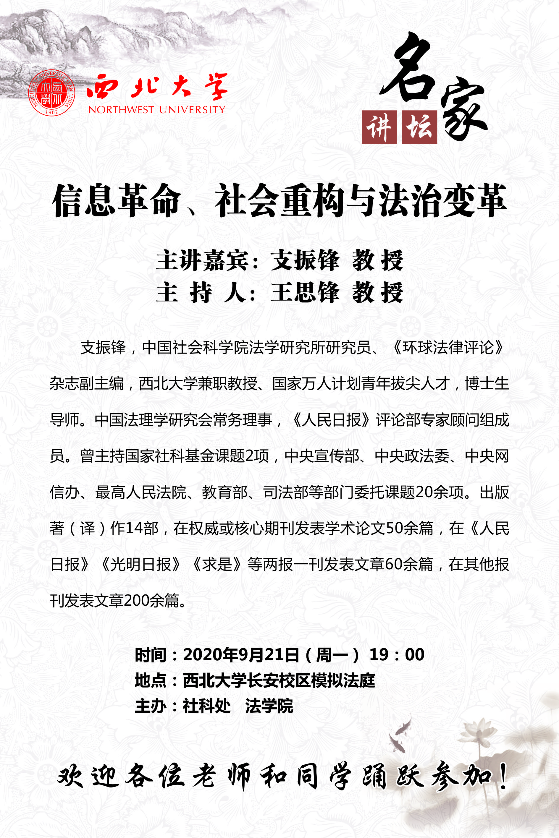 名家讲坛|支振锋:信息革命、社会重构与法治变革