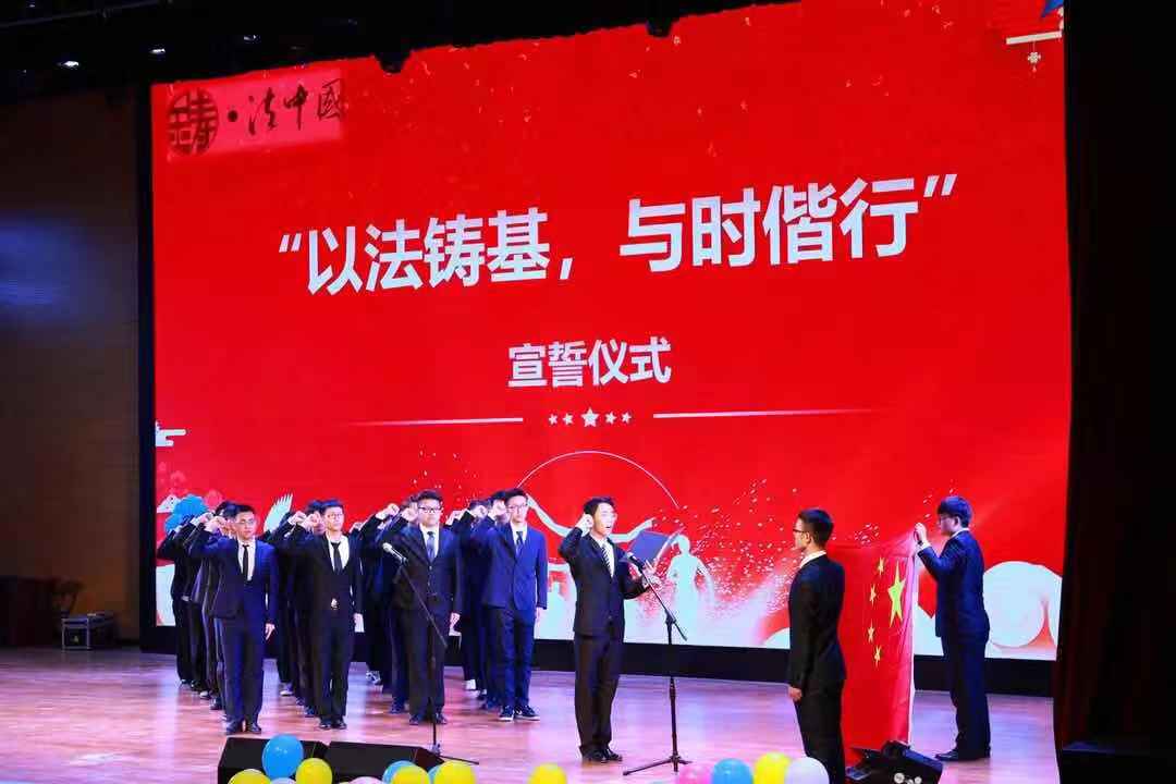 随后,太阳成集团tyc122ccvip员工会全体成员上台进行宣誓仪式。庄严的宣誓更是体现了法学学子以火红青春建设西大法学,以奋斗激情建设法治中国的豪情壮志。