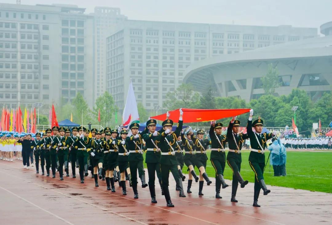 他们永远走在队伍的最前方,和着节拍,挺直胸膛将鲜艳的国旗高举于中央,笔直的跑道更衬托出他们的训练有素。一步一庄严,一步一敬意。