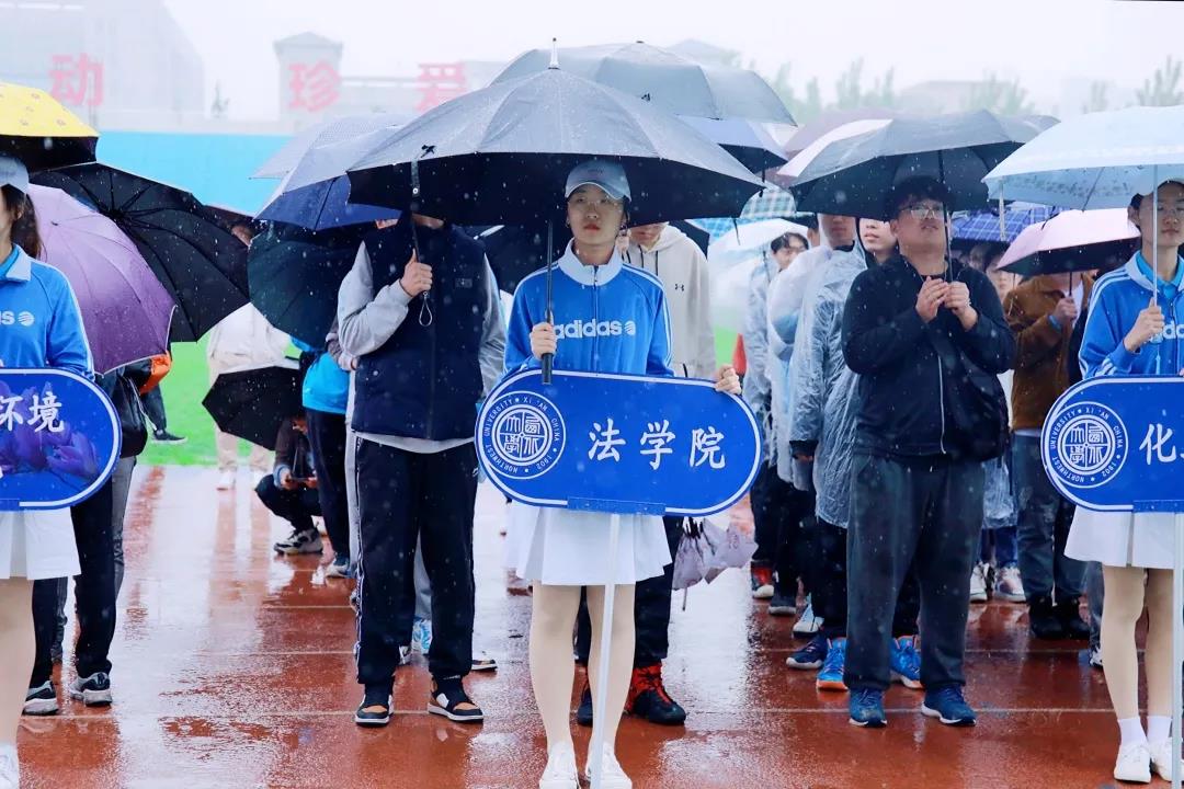 不同于昨天的阳光明媚,今天阴云密布,雨势也渐渐变大,但这并不能冷却运动健儿们火热的内心。田径场上依旧欢呼声不断,加油和呐喊声给予运动员们更大的勇气和力量。运动员们奋力一搏,在运动会的尾声留下精彩的瞬间,无悔的结果。