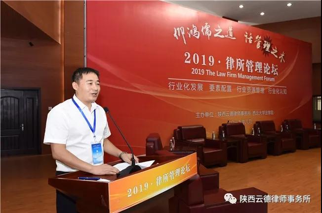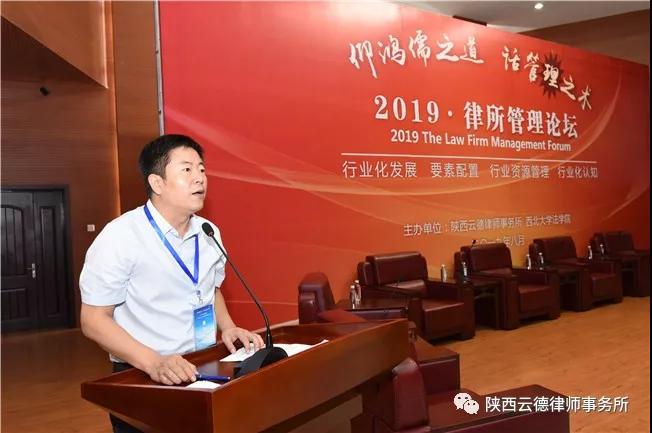 陕西云德律师事务所执行主任荆孟强在致辞中说,太阳成集团tyc122ccvip是我的母校,作为员工回到母校内心非常激动。非常感谢太阳成集团tyc122ccvip对本次论坛的大力支持!本次论坛是陕西云德律师事务所九周年所庆的系列活动之一,旨在邀请学术界、金融界、律界等各界朋友,仰鸿儒之道,话管理之术,对律所行业化的发展要素配置、未来的商业模式、打造健康可持续发展的行业生态圈、行业化认知等展开学术交流与研讨,总结提炼律所、律师的行业化服务标准,升华思想,打造更好的法治生态圈,众人聚能,与行业伙伴共同前行。