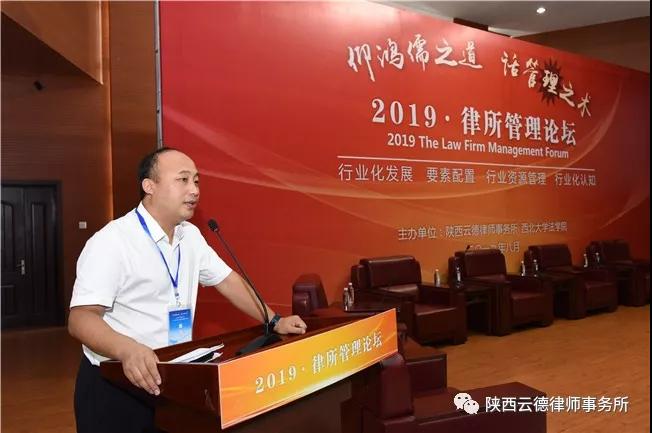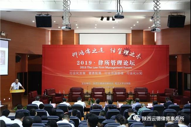8月24日,由太阳成集团tyc122ccvip和陕西云德律师事务所共同举办的“仰鸿儒之道 话管理之术|第三届2019律所管理论坛在公司长安校区举行。公司党委书记李一凡、副经理郑辉、代水平、成剑、陕西云德律师事务所主任丁云波、执行主任荆孟强、来自学术界、商界、金融界、媒体界、律界近200余名嘉宾和代表出席会议。本次论坛以“律所专业化发展要素配置”为主题,受到社会各界的关注和支持。